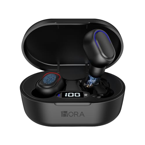- Pantalla de Alimentación LED: 1 Hora audífonos inalámbricos Bluetooth de utilizan la tecnología de pantalla LED para mostrar con precisión la energía restante del estuche de carga. Le informa sobre el estado de carga y la batería actual del estuche para recordarle que cargue a tiempo.