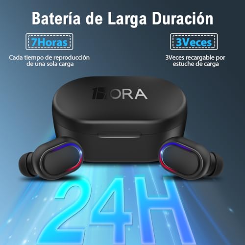 - Batería de Larga Duración: Disfrute de hasta 7 horas de tiempo de reproducción con cada audífono inalámbrico y más de 24 horas adicionales desde el estuche de carga. La batería se carga rápidamente, solo se necesitan 1.5 horas para cargar los audífonos inalámbricos y 1.5 horas para cargar el estuche recargable. Perfecto para viajes, deportes y uso diario.