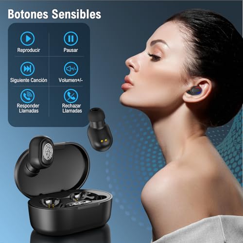 - Botones Físicos para Smart Touch: Está equipado con botones reales con un clic satisfactorio en lugar de los controles táctiles inconsistentes. Simplemente saque los auriculares inalámbricos del estuche de carga y los audifonos se conectarán automáticamente a su teléfono. Use los audifonos inalámbricos para jugar, pausar, saltar música y contestar llamadas.