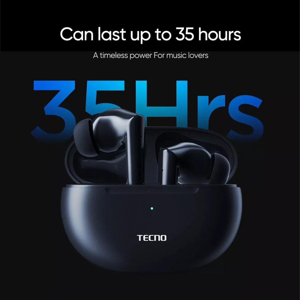 Los audífonos TECNO BUDS 3 ofrecen una experiencia de sonido excepcional con un controlador de graves optimizado y tecnología de cancelación de ruido Omni-Noise para llamadas claras. Con Bluetooth 5.3, proporcionan una conexión estable y de alta calidad. Con una duración de batería impresionante de 35 horas y carga rápida a través de USB tipo C, son ideales para sesiones de música prolongadas.