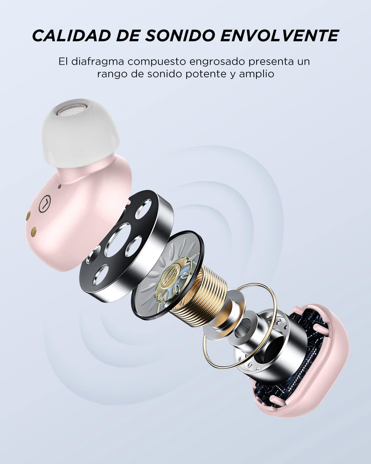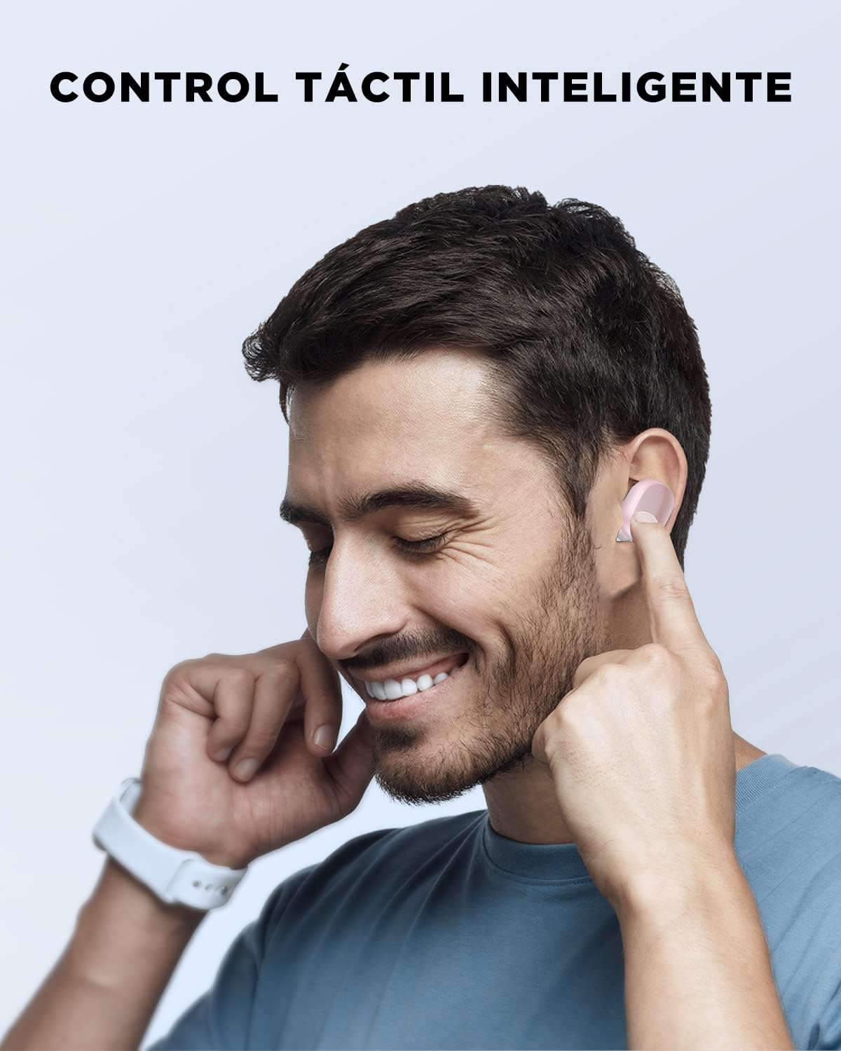 Control Táctil Inteligente: Maneja tu música y llamadas fácilmente con el control táctil intuitivo. Reproduce, pausa, avanza o retrocede canciones con simples toques. Ajusta el volumen tocando dos veces el auricular izquierdo para subirlo y el derecho para bajarlo. Además, contesta o cuelga llamadas con un solo toque.