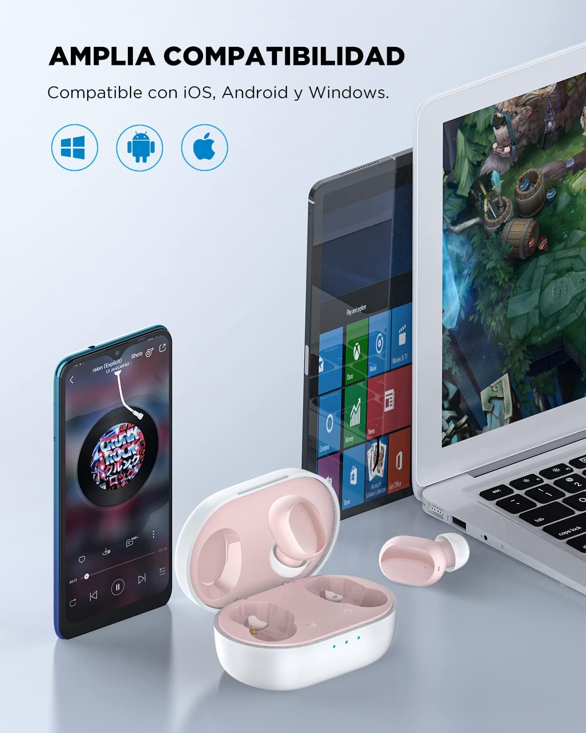 Con un diseño elegante en color rosa, los audífonos HTC TWS5 combinan estilo, comodidad y tecnología avanzada para brindarte una experiencia auditiva superior en cualquier lugar.
