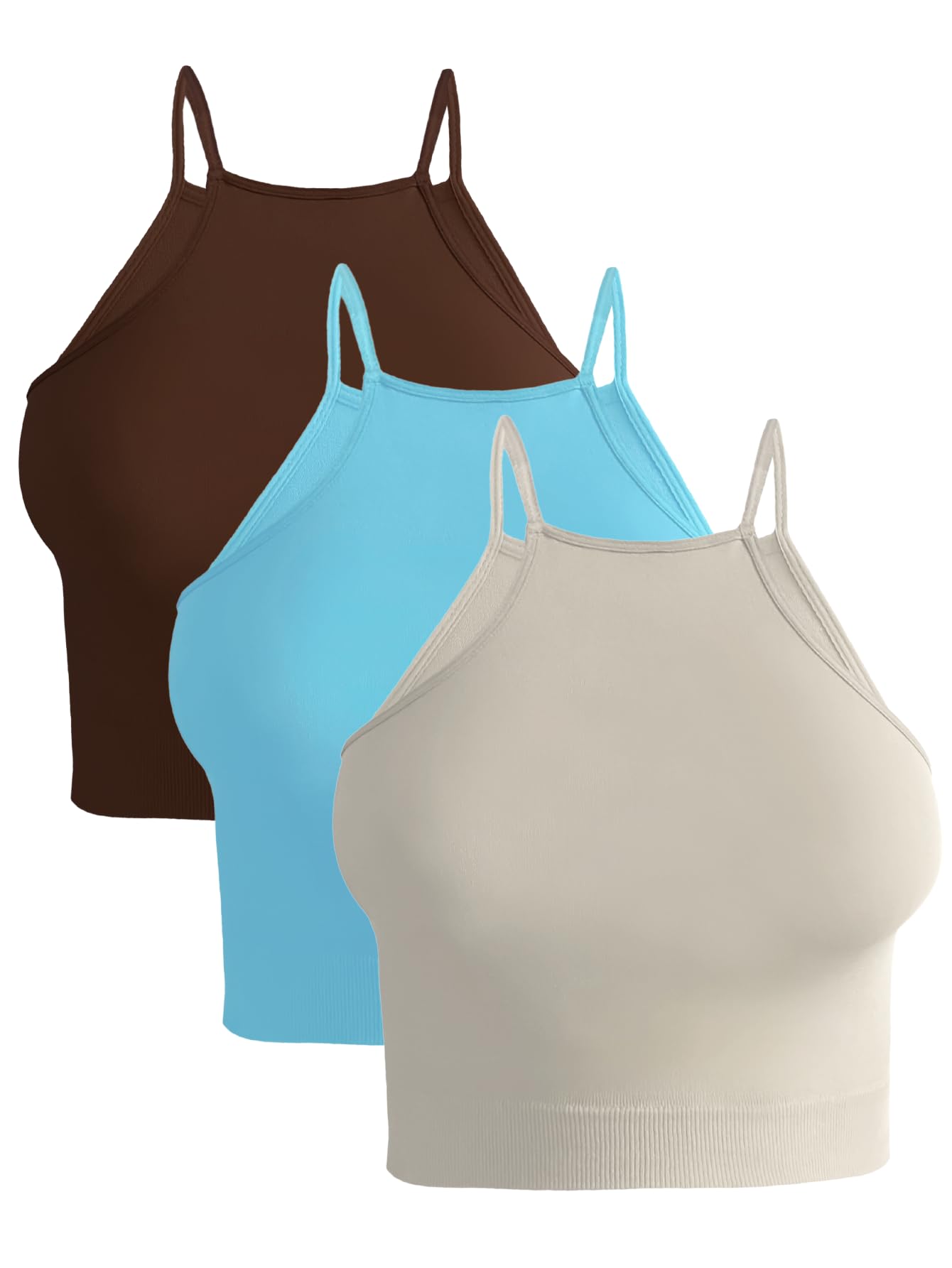 Pack de 3 Tops de Mujer Deportivo o Casual Blusas Croptop básicos Dama Tirantes Camiseta Corta Dama Stretch