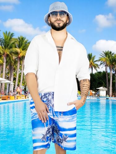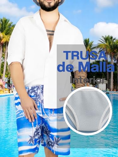 Traje de Baño Hombre Estampado Trajes de Baño de Playa de Secado Rápido con Forro de Mallas, Bañador Corto para Playa, Natación o Piscina